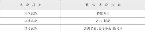 锂电池的安全性检测中的适应性试验主要内容见表。
